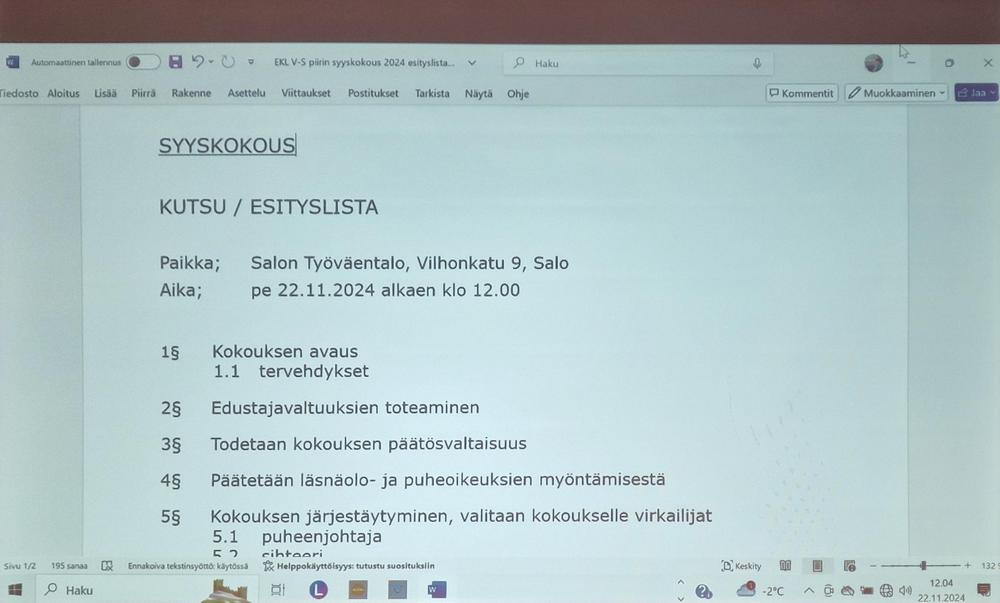 Syyskokous Salossa 22.11.2024